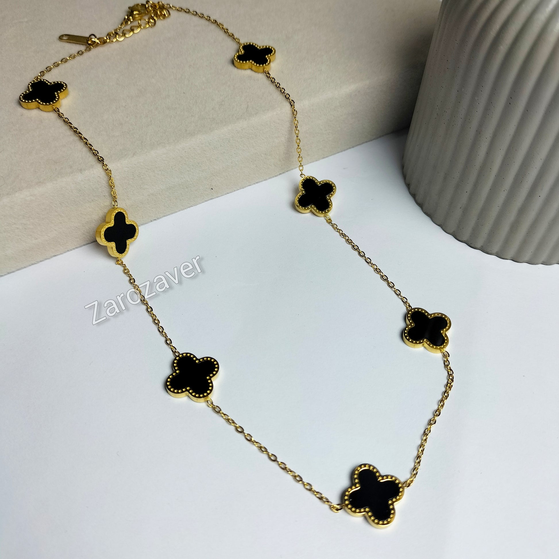 Embrace elegance with our Clover Maala necklace! This stunning necklace features seven intricately designed pendants, each representing a unique aspect of life. Add a touch of sophistication to any outfit with this must-have accessory. Perfect as a gift or for treating yourself, the Clover Maala is sure to make a statement.